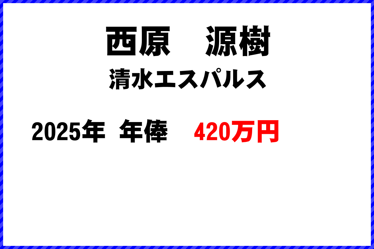 HOME> サッカーJリーグ チーム別年俸ランキング> 清水エスパルス > 西原源樹