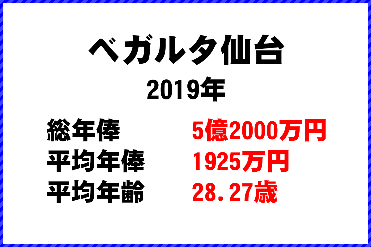 HOME> サッカーJリーグ チーム別年俸ランキング> 2019> 「ベガルタ仙台」