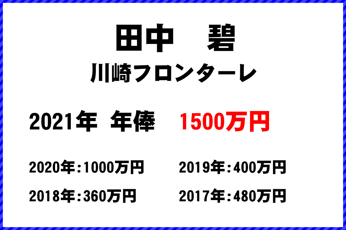 HOME> サッカーJリーグ チーム別年俸ランキング> 川崎フロンターレ > 田中碧