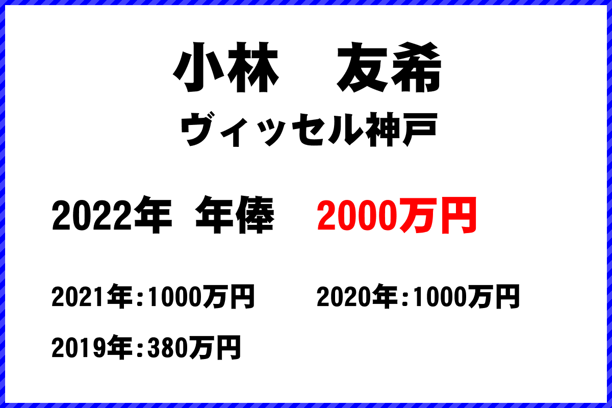 HOME> サッカーJリーグ チーム別年俸ランキング> ヴィッセル神戸 > 小林友希