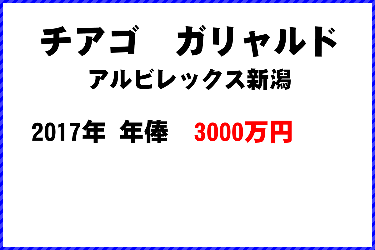 | 2017年 | アルビレックス新潟 | チアゴ ガリャルド | 28歳 | 3000万円 |