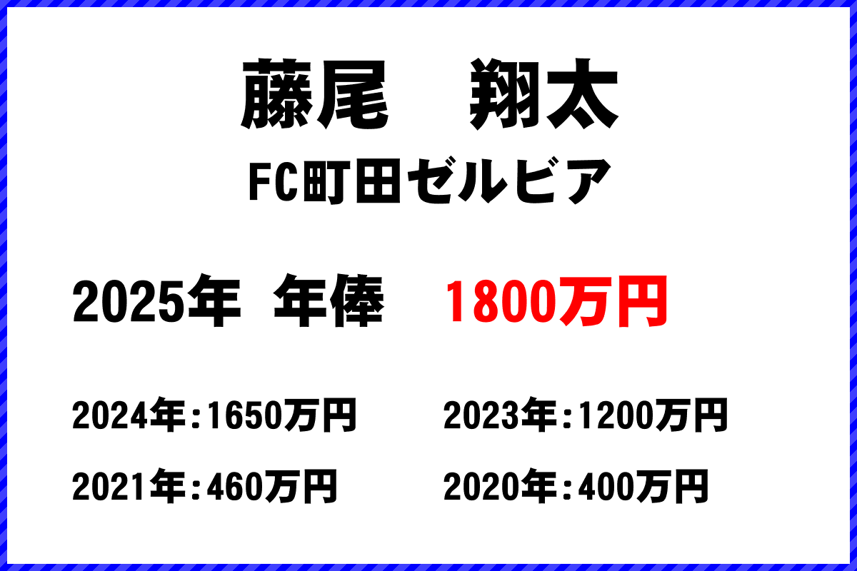 | 2025年 | FC町田ゼルビア | 藤尾 翔太 | 24歳 | 1800万円 |