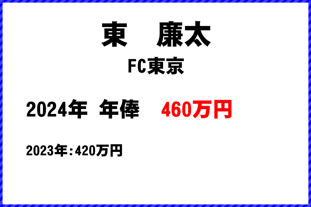 HOME> サッカーJリーグ チーム別年俸ランキング> FC東京 > 東廉太