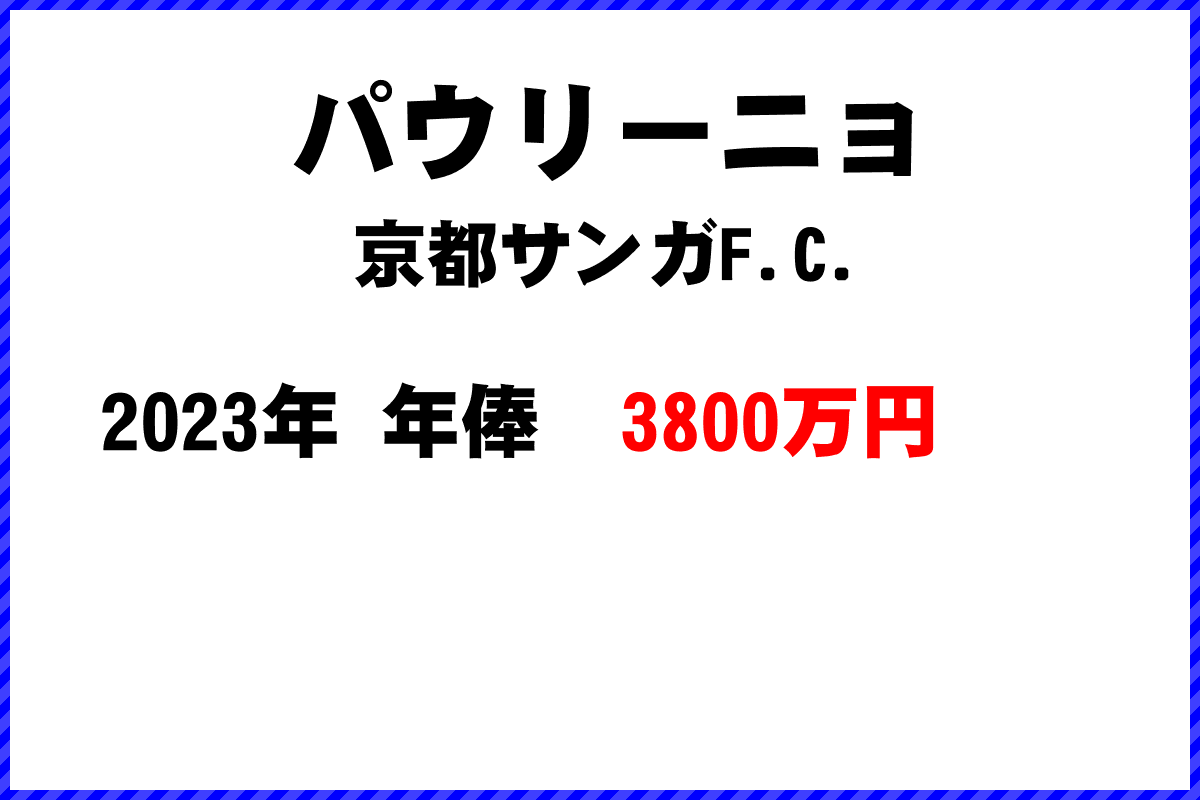 HOME> サッカーJリーグ チーム別年俸ランキング> 京都サンガF.C. > パウリーニョ