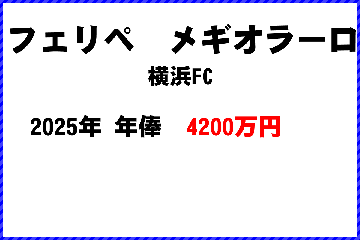HOME> サッカーJリーグ チーム別年俸ランキング> 横浜FC > フェリペメギオラーロ
