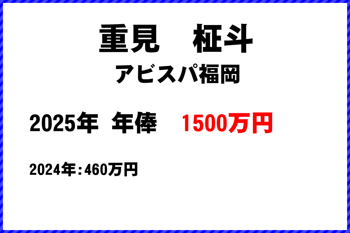 2025年の年俸| 選手名 | 重見柾斗 (Masato SHIGEMI) | ||