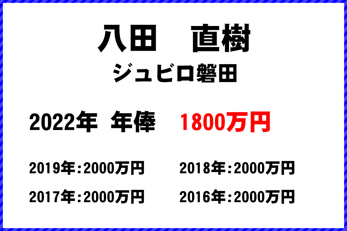 HOME> サッカーJリーグ チーム別年俸ランキング> ジュビロ磐田 > 八田直樹