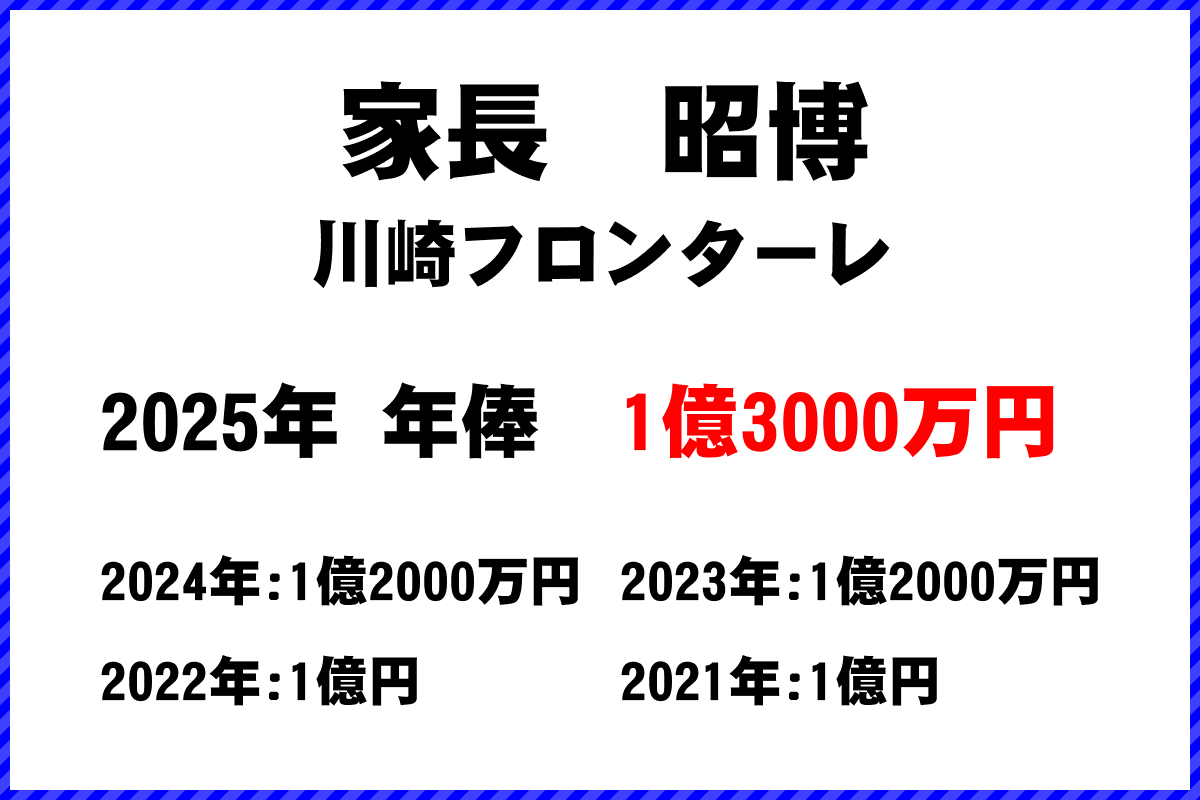 2025年の年俸| 選手名 | 家長昭博 (Akihiro IENAGA) | ||