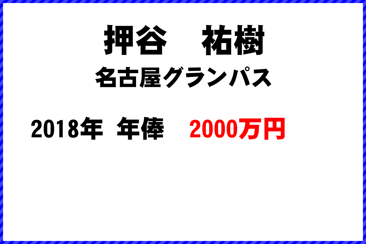 | 2018年 | 名古屋グランパス | 押谷 祐樹 | 29歳 | 2000万円 |